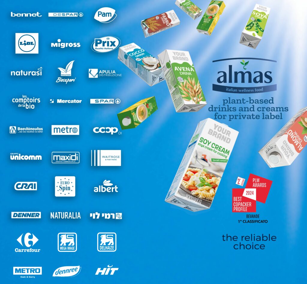 ALMAS S.R.L. | Private Label Excellence in Plant-Based Beverages Founded in 2019, ALMAS S.R.L. is a specialized Italian manufacturer dedicated exclusively to the Private Label sector. We partner with leading retailers and brands to develop premium plant-based beverages, ranging from classic oat and almond drinks to innovative allergen-free blends. Our mission is to transform high-quality raw materials into tailor-made liquid solutions. By focusing 100% on private label production, we ensure maximum flexibility, rigorous quality control, and a strategic commitment to our clients' brand growth. At ALMAS, we bring your plant-based vision to life with Italian expertise.