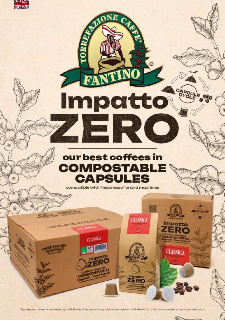 IMPATTO ZERO_COMPATIBLE COMPOSTABLE CAPSULES for HOTELS and HOSPITALITYCoffee blends, single origins, high-quality organic coffees, in compostable capsules with your logo on the top of the capsula