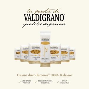 Produced with 100% Italian Kronos® durum wheat semolina, one of the most valued wheat varieties worldwide, it is characterized by an intense golden color, compact texture and glassy fracture — clear indicators of superior raw material selection.