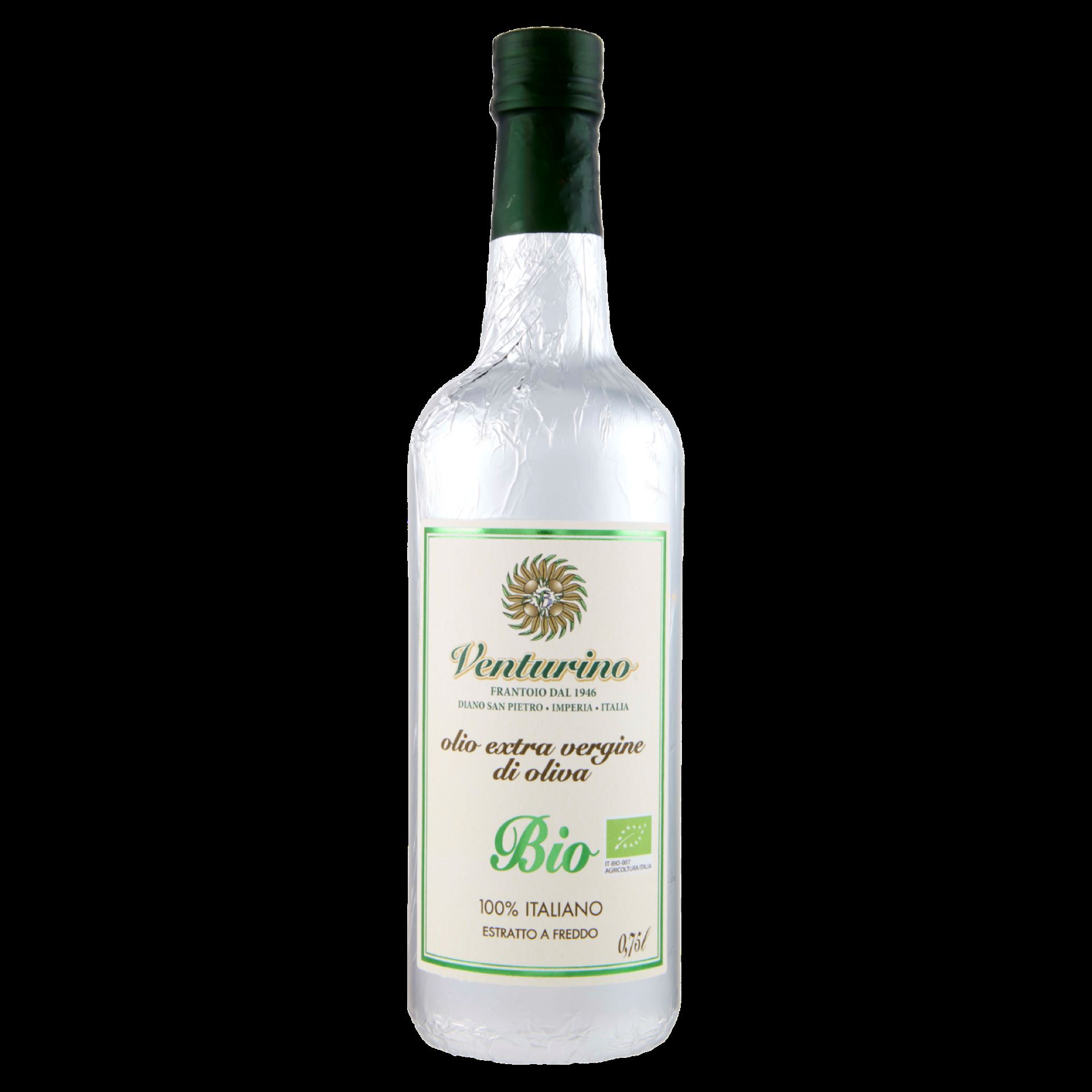 Frantoio Venturino’s Organic extra virgin olive oil is obtained and pressed just from 100% italian olives coming from organic farming. Characterised by delicate and sweet taste, the Frantoio Venturino’s organic extra virgin olive oil is perfect with every kind of dish, expecially with fish, meat and side dishes.