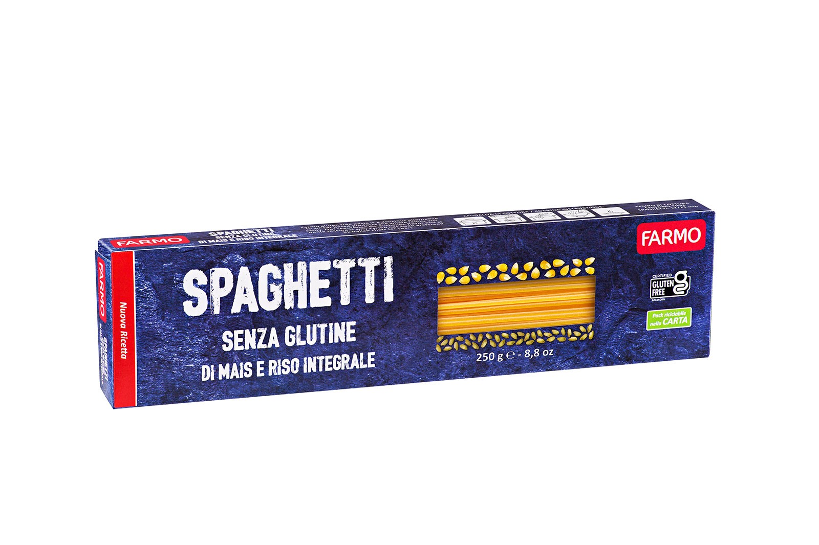 Simply Pasta: our Blue Line completely gluten free and satisfies even the most discerning palates, this makes this product an icon of Italian taste. As well as being available in the classic shapes (PENNE, FUSILLI, SPAGHETTI).