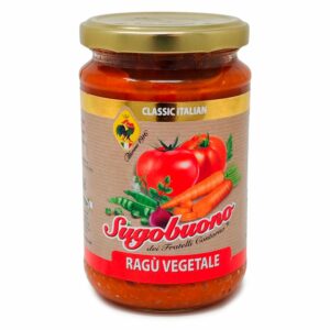 - A tomato-based sauce with plant-based ingredients, characterized by a texture with suspended particles and a deep red color. The flavor is typical of spicy tomatoes, enhanced by legumes and vegetables that add body and depth, making it a great alternative to traditional ragù. Ready-to-use and sterilized, it is perfect for seasoning pasta, grains, and vegetarian dishes, ensuring convenience and consistent quality. Available size: 140 gr tin, 300 gr jar, 680 gr jar.