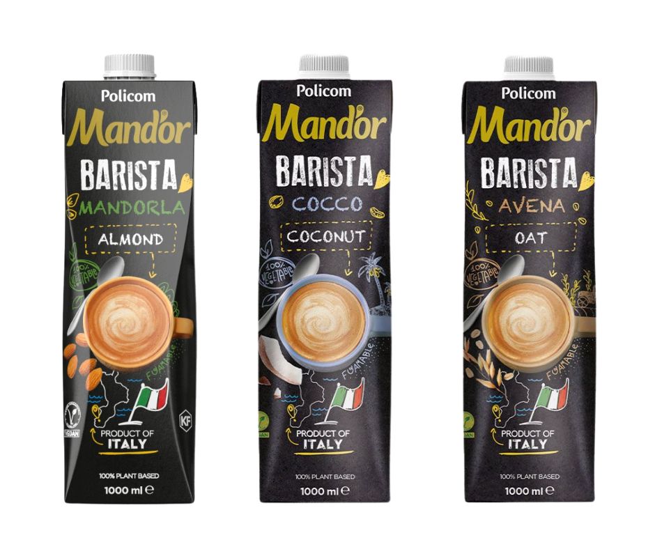 The Mand'or Barista drinks line available in Almond, Oat and Coconut flavours