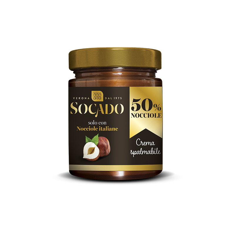 Una crema spalmabile al cacao e nocciole realizzata con il 50% di nocciole italiane. Perfetta per ogni occasione. Senza glutine e senza olio di palma.
